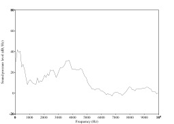 Molto usata da Bobby Mcferrin nel canto a cappella è una qualità percettivamente somigliante al twang ma con caratteristiche acustiche distintive, che potremmo definire trumpet likeper via della singolare vicinanza con il suono di una tromba con sordina. Essa infatti presenta un inconfondibile timbro estremamente brillante, pulito e metallico e viene usata perlopiù con scopi strumentali e di accompagnamento (si pensi al riff di fiati che si alterna al cantato in I feel good), per piccoli assoli (come si può ascoltare in Thinking about your body) o a scopo di fraseggio comico (per esempio negli spassosi live sul Mago di Oz). Ciò che colpisce di questa qualità è come, dal punto di vista fisico-acustico, risulti molto lontana dalle altre modalità di emissione. Spettrograficamente si nota infatti la presenza di armonici ricchi di energia, determinanti un profilo dello spettro di potenza molto caratteristico, con picchi perlopiù isoenergetici in successione, che molto si discostano dal tipico aspetto dello slope spettrale dell’emissione vocale (Fig. 10).